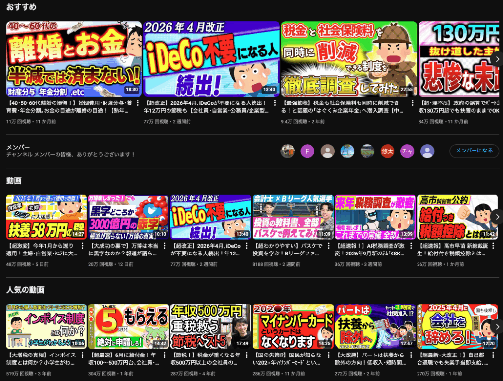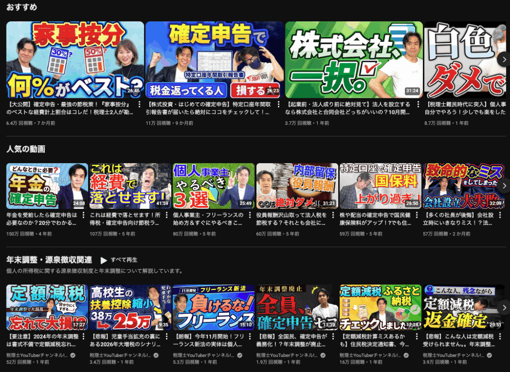 税金・専門知識に特化したチャンネル