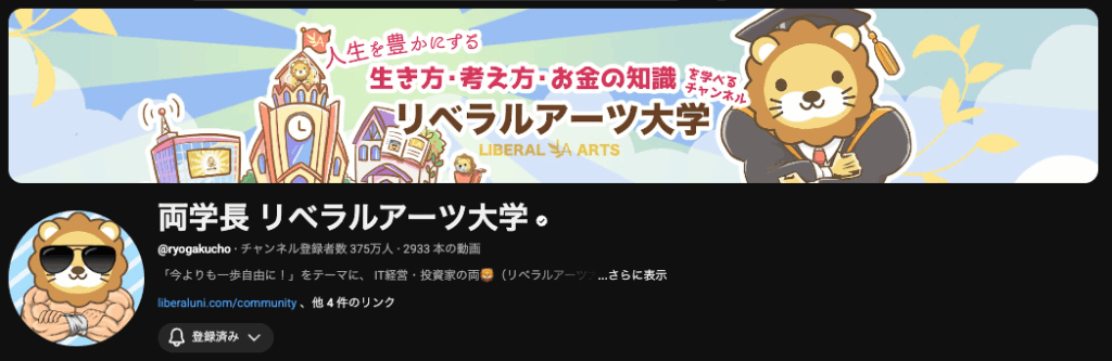 IT企業経営者・投資家である両学長(キャラクターはライオン)が運営。「5つの力」(稼ぐ、貯める、増やす、守る、使う)を柱に、経済的な自由を得るための知識を網羅的に発信しています。関西弁の親しみやすい語り口と、ゆるいイラストが特徴で、初心者でも抵抗なく学べます。動画学習だけでなく、オンラインコミュニティ「リベシティ」を運営し、実践を促しています。
