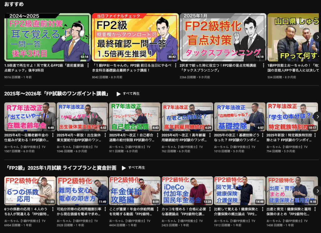 1級FP技能士・FP講師が運営し、FP技能士(3級・2級)の合格に特化した解説動画を配信。資格試験の講師経験を活かした、効率的で分かりやすい講義が特徴です。