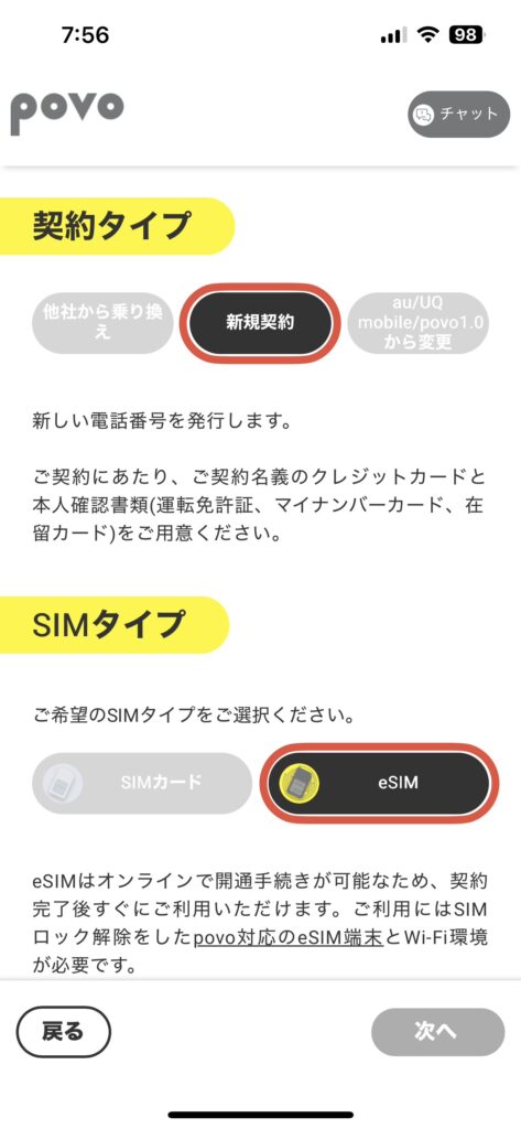 povo2.0はKDDI(au)が提供する、基本料金0円のSIMサービスです。eSIM(物理的なSIMカードなし)に対応しているため、海外にいながらオンラインで完結できます。