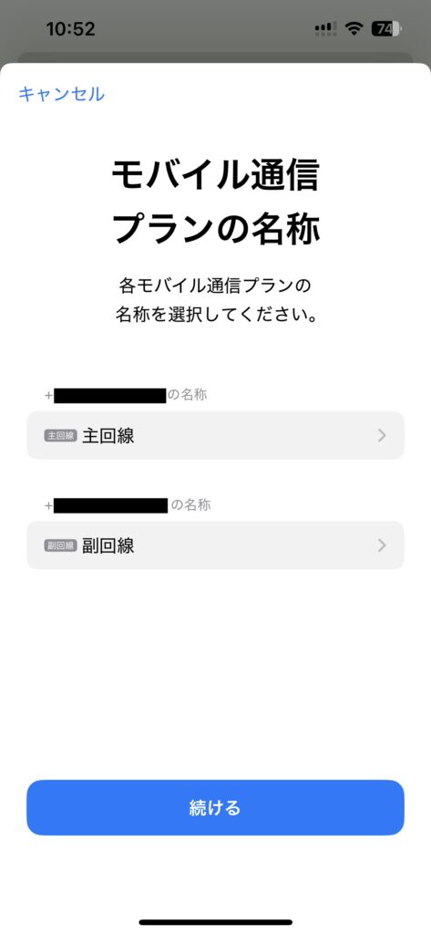 3. 一度前の画面に戻り「副回線」を再度タップ