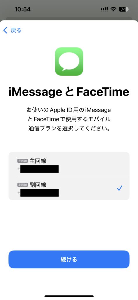 設定 → モバイル通信 → SIMの副回線をON にすると、右上の電波アンテナが2段になります。これでeSIMが正常にアクティベートされた証拠です。