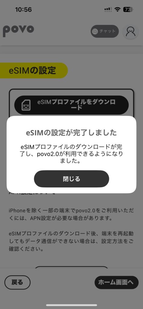 海外でSMSを受信するには、海外ローミングを有効にする必要があります。これは自分では設定できず、povoサポートへの依頼が必要です。